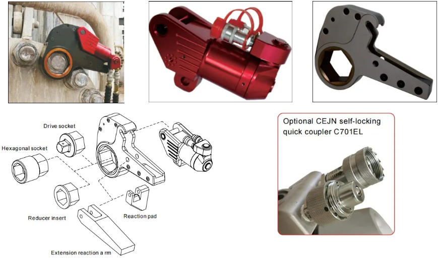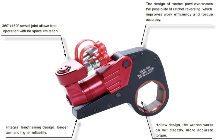 3) Cờ lê mô-men xoắn thủy lực cấu hình thấp KLCD có thể chạy trơn tru dưới áp suất 70MPa và có độ chính xác cao, với độ lặp lại mô-men xoắn ± 3%. Khớp quay 360 × 180 độ cho phép nó hoạt động tự do hơn trong mọi không gian nhỏ.