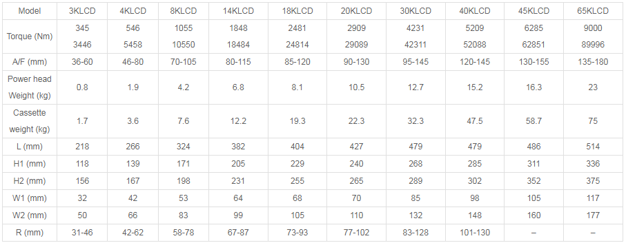 4) Có 11 mẫu cờ lê khe hở thấp TorcStark KLCD, với dải mô-men xoắn rất rộng từ 237Nm đến 85000Nm.