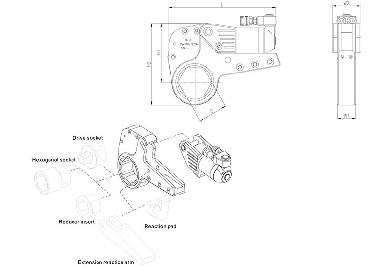 2) The working head and fulcrum of KLCD low profile hydraulic wrench are coaxial, with perfect structure and long service life. One power head can match different working heads.