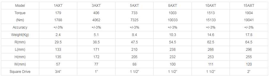 2) Áp suất làm việc tối đa của cờ lê mômen truyền động vuông AXT có thể đạt 70MPa. Đầu ra mô-men xoắn của nó dao động từ 179Nm đến 19000Nm, với độ chính xác đầu ra mô-men xoắn cao, và mô-men xoắn lặp lại đầu ra tối đa là ± 3%.