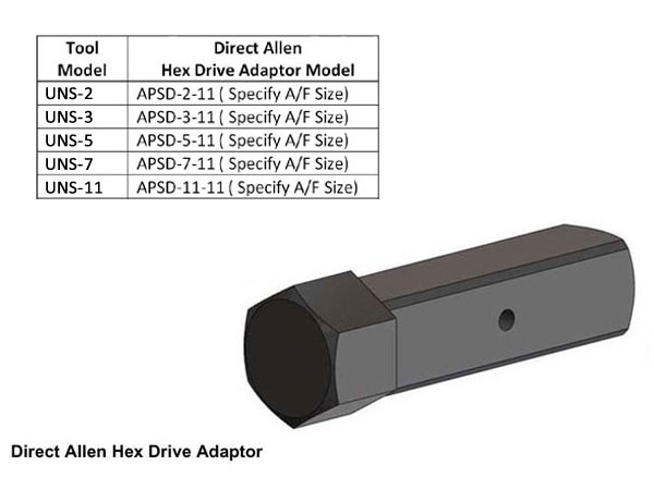 + Đầu chuyển trực tiếp từ lỗ vuông sang lục giác/ Direct allen hex drive adaptor:
