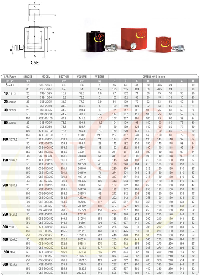 Kích thủy lực 1 chiều 150 tấn CSE-150/50 hồi về bằng tải