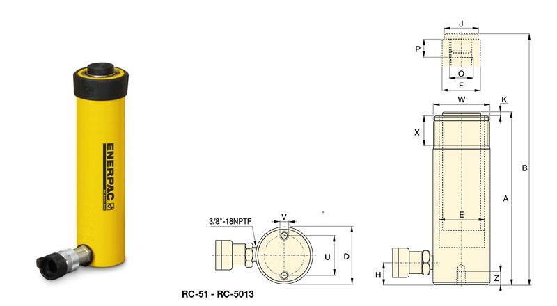 RC308, 32.4 ton Capacity, 8.25 in Stroke, General Purpose Hydraulic Cylinder