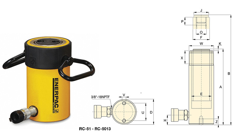 RC506, 55.2 ton Capacity, 6.25 in Stroke, General Purpose Hydraulic Cylinder