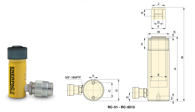 RC51, 4.9 ton Capacity, 1.00 in Stroke, General Purpose Hydraulic Cylinder