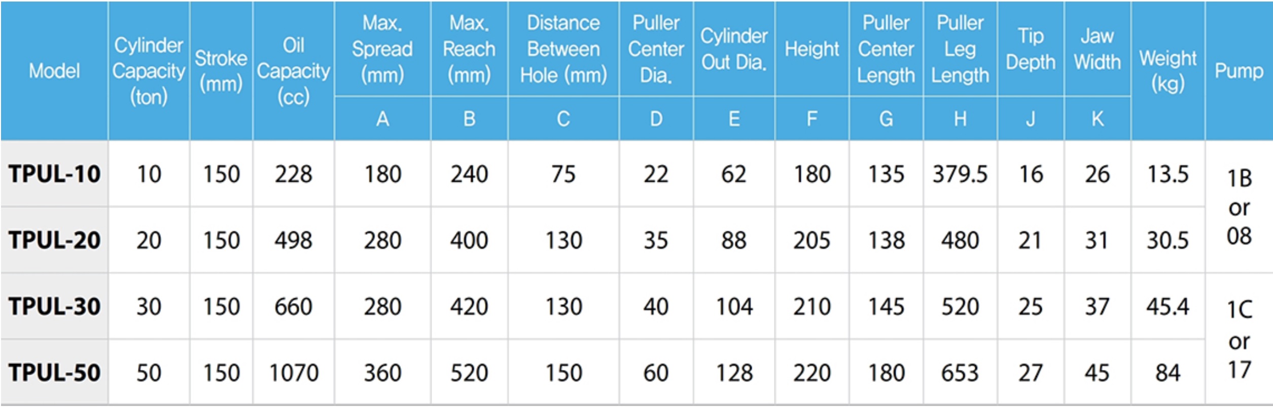 TPUL-50 Cảo thủy lực 50 tấn 700bar Tecpos - Korea