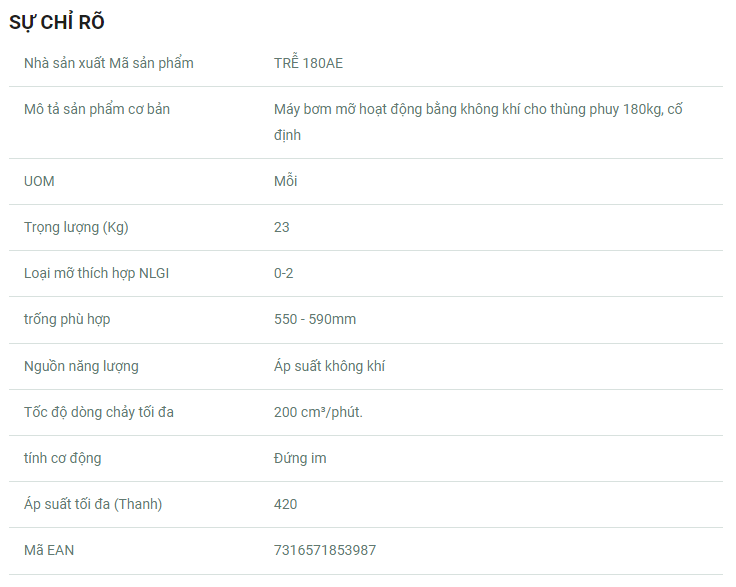 Máy bơm mỡ vận hành bằng không khí SKF LAGG 180AE được thiết kế để cung cấp mỡ ở áp suất cao từ thùng phuy 180 kg. Điều này rất hữu ích khi phải lấp đầy các vỏ lớn hoặc khi phải bôi trơn nhiều điểm. Máy bơm vận hành bằng không khí cũng có thể được sử dụng để nạp các bình chứa hệ thống bôi trơn tập trung.