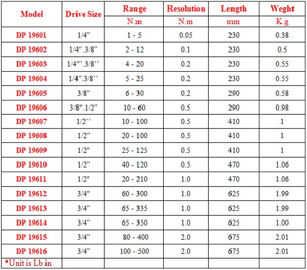 3. Đầu ra khẩu vuông tùy loại lực siết khác nhau, đầu ra: 1/4", 3/8", 1/2", 3/4", 1", 1-1/2", 2".