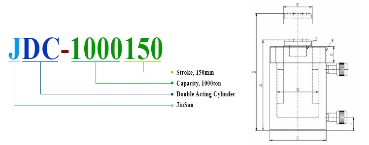 As the hydraulic pressure inlet is separated, it operates in the double acting mode. It is suitable for large rams.