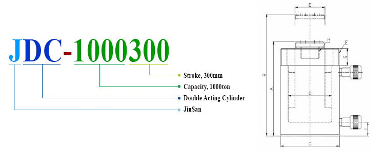 As the hydraulic pressure inlet is separated, it operates in the double acting mode. It is suitable for large rams.