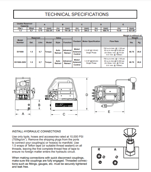 Motor Specification : 1.5 HP @ 115VAC Single Phase