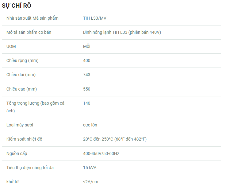 SKF TIH L33 là thiết bị gia nhiệt cảm ứng lớn và được thiết kế để gia nhiệt vòng bi. Bộ gia nhiệt này được đặc trưng bởi hiệu suất gia nhiệt cao đối với các ổ trục lớn và thiết kế linh hoạt cho phép gia nhiệt ổ trục ở vị trí nằm ngang hoặc thẳng đứng. Ách trượt hỗ trợ quy trình làm việc thuận tiện và máy sưởi có thể dễ dàng được vận chuyển bằng xe nâng. TIH L33 có thể gia nhiệt các ổ trục có đường kính lỗ tối thiểu là 115 mm và các ổ trục lớn hơn với trọng lượng tối đa là 700 kg.