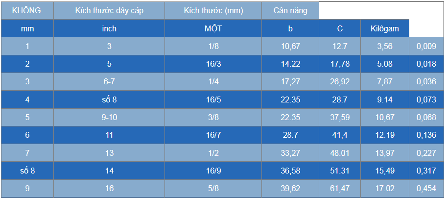 Kích thước (mm) : 1/2 mm