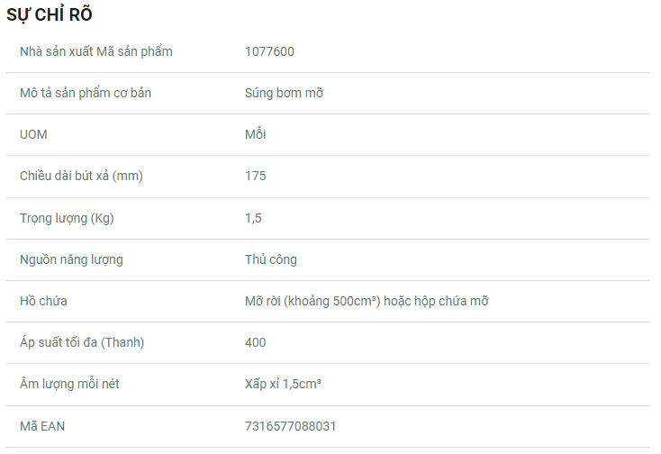 SKF Grease Gun 1077600 lý tưởng để sử dụng trong các ngành nông nghiệp, công nghiệp và xây dựng và cho mục đích sử dụng cá nhân. Súng mỡ được cung cấp với ống nối dài 175 mm (6,9 n.) và vòi kẹp thủy lực.